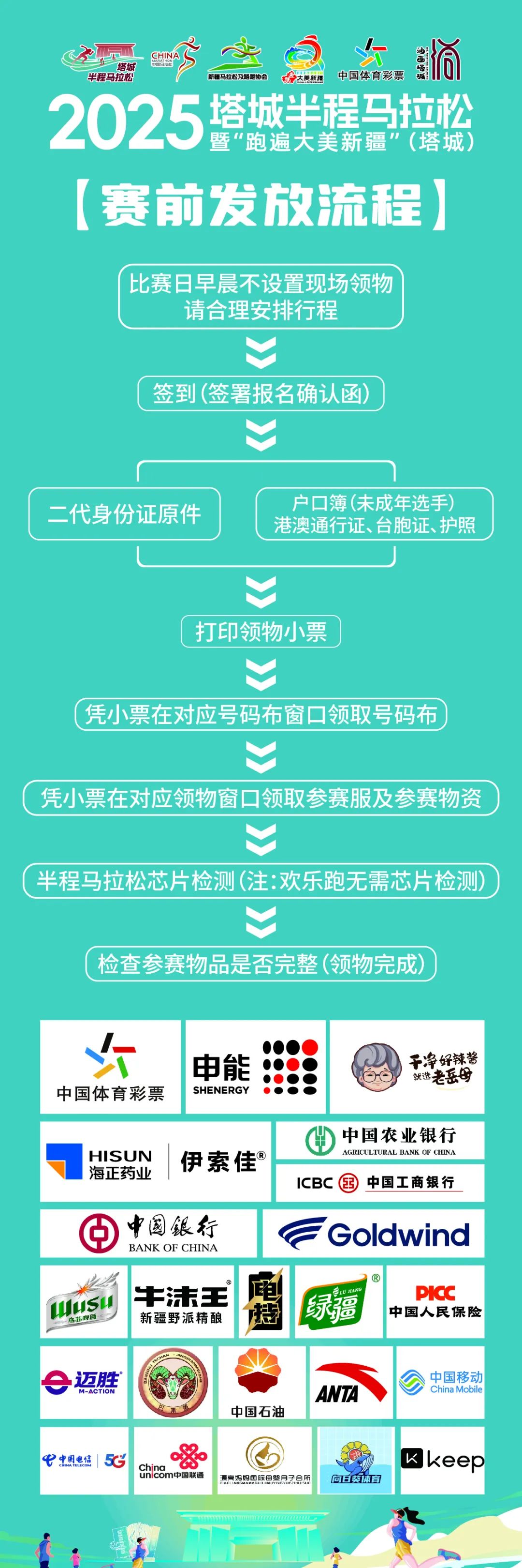 第四步:清点参赛包物品及其他个人物品,确认无误后离开领物现场,可前往参加2025塔城半程马拉松暨“跑遍大美新疆”(塔城)博览会。