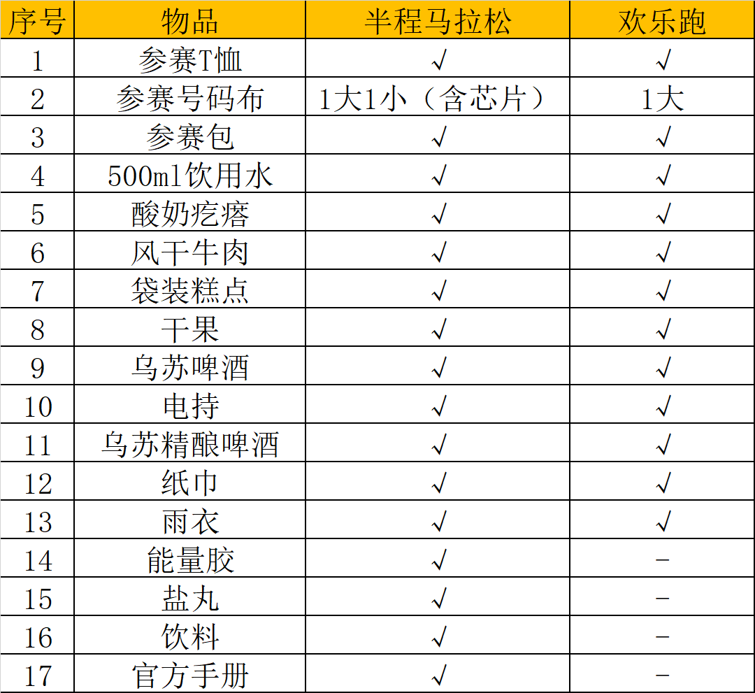 1.号码布:半程含计时芯片,请勿折叠或损坏;小号码布用于存包。